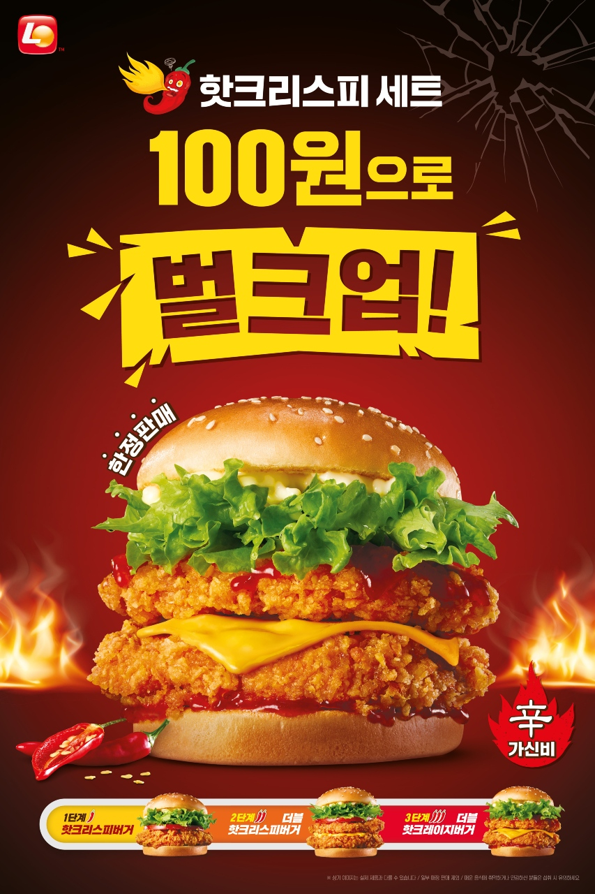 다음달 24일까지 한정 판매 하는 제품으로 기존 핫크리스피버거 세트보다 100원 비싼 6900원에 판매한다. 더블 핫크리스피버거는 기존 제품에 패티와 슬라이스 치즈를 추가했으며, 더블 핫크레이지버거는 매운 갈릭 소스를 추가해 매운 맛을 더 높였다.