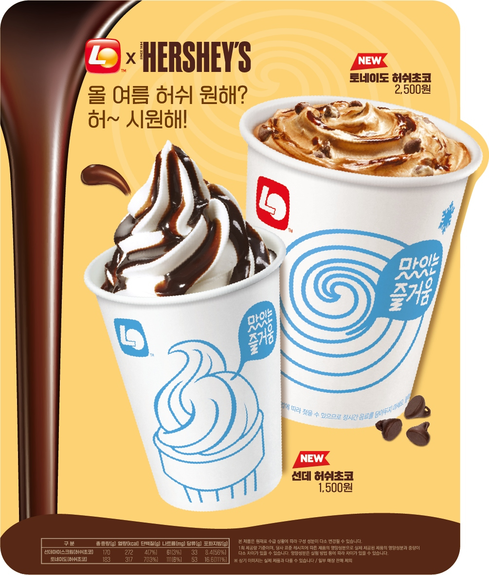 롯데리아가 ‘허쉬’와 협업해 내놓은 아이스크림 2종/사진= 롯데GRS 롯데GRS는 버거 프랜차이즈 롯데리아가 여름철 시즌에 맞아 초콜릿 브랜드 '허쉬'와 제휴한 아이스크림 디저트 2종을 출시한다고 8일 밝혔다. 허쉬 초콜릿의 진하고 부드러운 초코 맛을 느낄 수 있는 제품으로 떠 먹는 아이스크림 '선데 허쉬초코', 허쉬 초코칩과 시럽을 첨가한 '토네이도 허쉬초코'다. 독자들의 PICK! 윤미래, 뒤늦게 알려진 사망 소식..."긴 여행 떠나" 동서와 갈등→파혼 2번 아내..."조카는 남편 아이" 의심 충격 추성훈, '파격' 누드 화보 공개…"돈 안 받아, ♥야노 시호도 촬영" "남성 의사가 은밀한 곳 봤잖아" 이혼 선언…산부인과서 난동