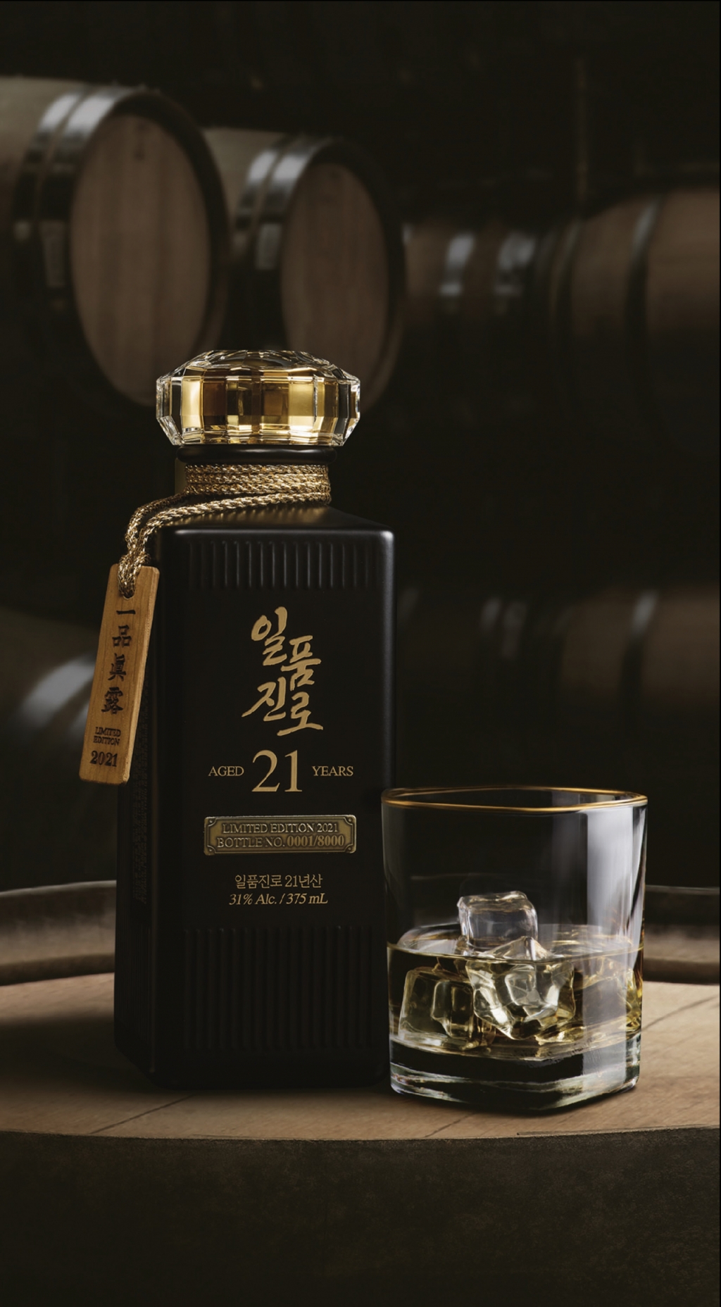 이번에 선보이는 일품진로 21년산은 풍미가 가장 뛰어난 중간층 원액만을 선별해 21년 이상 숙성한 제품으로 목통의 위치를 주기적으로 바꾸고 교체하는 등 긴시간 동안 최적의 온도와 습도를 맞춰 탄생한 제품이다. 하이트진로의 97년 역사와 양조 노하우를 바탕으로 최상급 싱글몰트 위스키와 견줄 만큼 최고의 품질을 갖췄다는 설명이다. 한 병의 출고가는 16만5000원, 한박스(375ml 6병 기준)에 99만원이다.