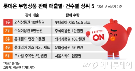 롯데온 무형상품팀은 올 초 신설 후 업계 최초 무형상품을 잇따라 출시하며 성과를 올리고 있다. 지난 4월 KB증권과 협업해 출시한 국내 주식 이용권은 '동학개미 트렌드'와 겹치면서 누적 매출 20억원을 기록, 롯데온의 히트 상품이 됐다.