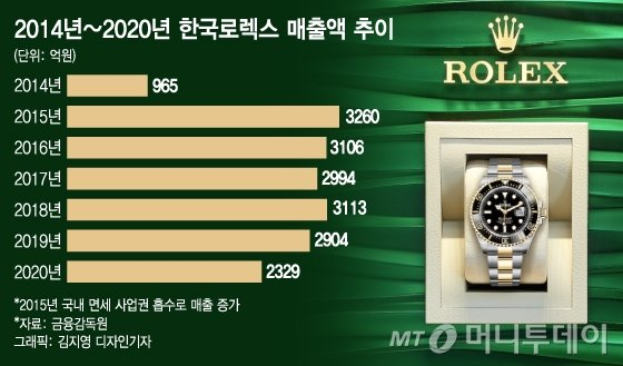 롤렉스는 공급 제한으로 실적이 훼손되는 것을 감수할 정도다. 한국로렉스의 2020년 매출은 2329억원으로 전년비 19.8% 감소했다. 영업이익은 283억원으로 49.2% 줄었고 당기순이익도 49.9% 감소한 219억원에 그쳤다. 롤렉스를 찾는 고객들은 넘쳐나지만 스위스 본사에서 공급되는 수량은 매우 제한되기에 엄청난 인기에도 실적이 되려 감소한 것이다. 한국로렉스의 연 매출은 2015년 이후 그다지 늘지도 않았다. 기업의 성장보다도 시계의 품질, 브랜드의 명성을 중시하기 때문에 가능한 일이다.