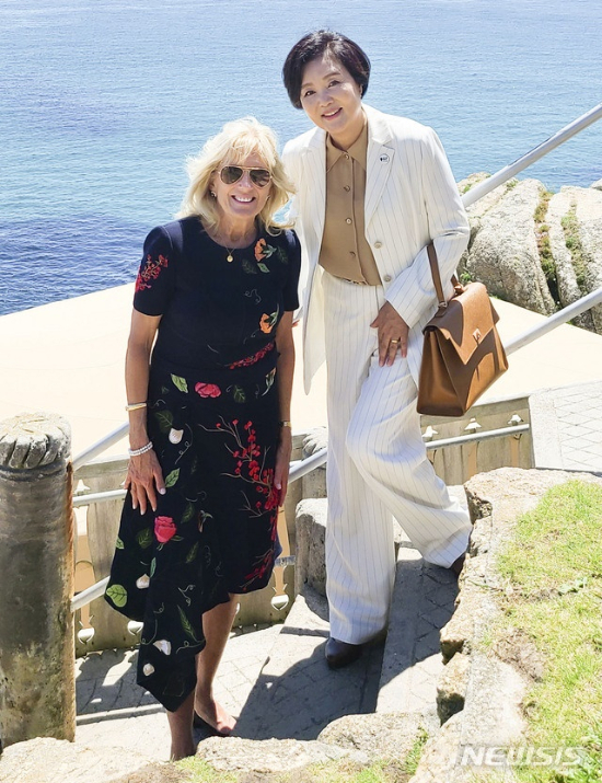지난 6월 한국의 영부인 김정숙 여사는 영국 콘월 미낙극장(Minack Theatre)에서 열린 G7 정상회의 배우자 프로그램을 마친 후 미국 대통령 부인 질 바이든 여사와 기념촬영을 했다. 당시 김정숙 여자는 낙타(카멜) 색상의 브라운 토트&숄더 가방을 들어 눈길을 끌었다.