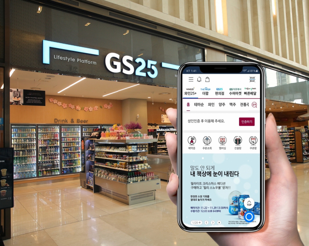 19일 GS리테일에 따르면 주류를 온라인으로 주문하고 GS25 편의점 등 오프라인에서 원하는 시간에 픽업할 수 있는 '와인25플러스' 서비스의 지난 3개월 매출은 전년 같은기간 대비 21배 증가했다. 와인25플러스는 지난해 7월 론칭한 주류 스마트오더 서비스로 와인, 위스키, 보드카, 칵테일, 전통주, 맥주, 수제맥주 등 4500종의 주류를 이용할 수 있다.
