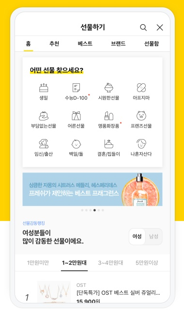 앞서 지난해 7월 상품권 등 교환권 상품을 장바구니에 담아 두고 한 번에 결제, 선물할 수 있는 선물상자 기능을 도입한데 이어 이번에는 배송 선물까지 한 번에 결제할 수 있도록 적용한다. 카카오톡 선물하기 장바구니 기능을 도입하면서 이용자가 지인에게 여러 상품을 한꺼번에 선물하면 선물 수신자의 카카오톡 메시지에는 기존 제품 사진 대신 선물상자 이미지가 노출된다.