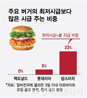 맘스터치 관계자는 "가맹점주가 아르바이트생을 고용하기 때문에 본사가 이들의 시급을 높여주는 것은 어렵다"며 "대신 본사 차원에서 아르바이트생을 지원할 방안을 마련하고 있다"고 했다.