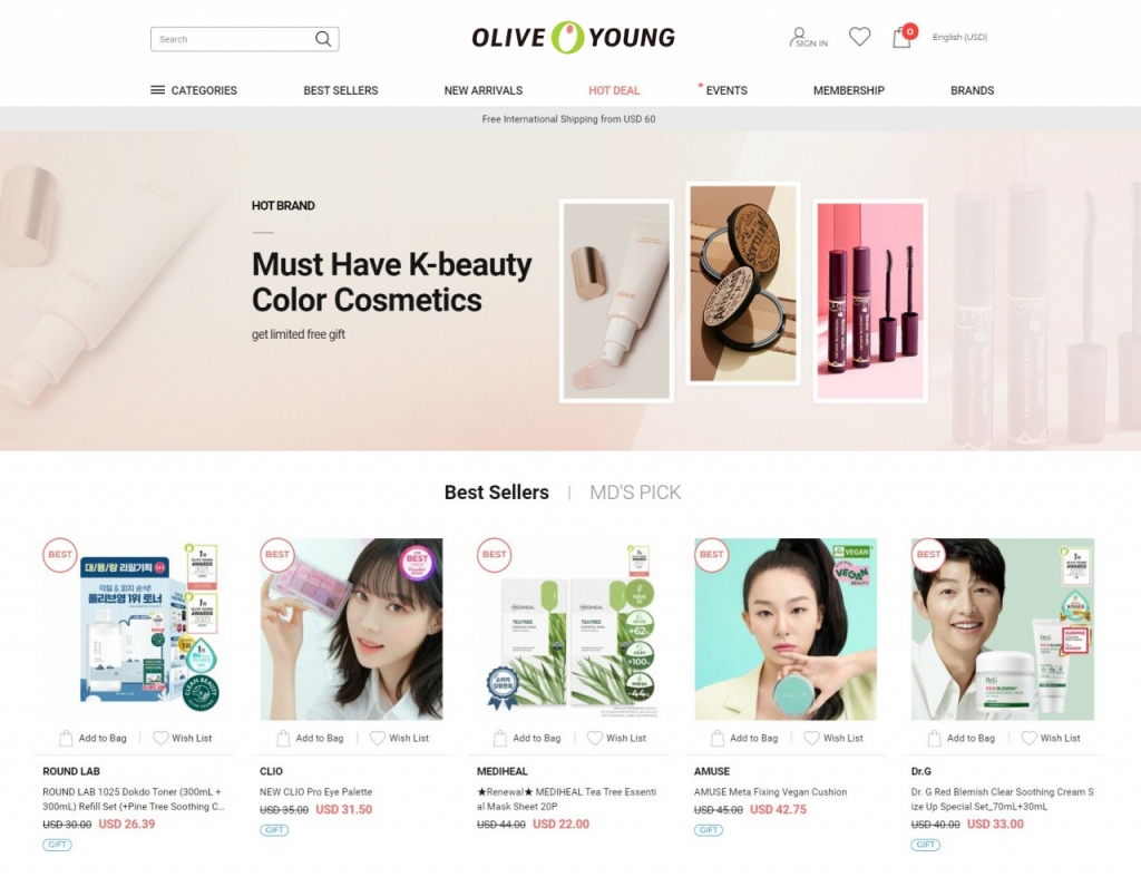 올리브영은 지난 2일부터 8일까지 일주일 간 대규모 정기 할인 행사인 올영세일을 진행했다. 이 기간 동안 글로벌몰에서 매출액기준 가장 많이 팔린 상품은 '라운드랩 자작나무 선크림'이었다. 2위와 3위는 '라네즈 네오 쿠션'과 '아이소이 블레미쉬 세럼'이 차지했다. 진입장벽이 낮은 마스크팩으로 한국 화장품을 경험한 해외 고객이 K뷰티에 관심을 갖게 되면서 구매가 확장된 것으로 분석된다.