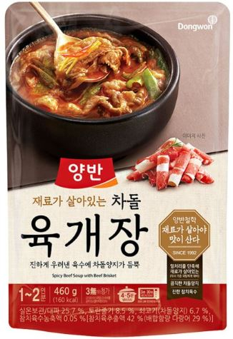 19일 관련 업계에 따르면 동원F&B는 다음달 1일부터 대형마트에 공급되는 양반 브랜드의 국·탕·찌개류 제품 9종의 가격을 평균 6%가량 상향 조정한다. 대표 제품인 '양반 차돌 육개장 460g'의 가격은 4980원에서 5480원으로 10% 오른다.