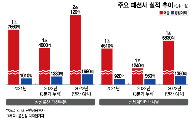 신명품을 수입하는 패션사의 실적도 개선됐다. 신명품을 적극적으로 발굴해 온 삼성물산 패션부문과 신세계인터내셔날이 대표적이다. 삼성물산 패션부문은 3분기 누적 매출액이 1조4600억원, 영업이익은 1330억원이었다. 4분기는 성수기라 삼성물산 패션부문은 2015년 합병 이후 처음으로 매출 2조원 돌파가 유력하다. 영업이익은 이미 지난해 연간 수준(1010억원)을 넘어섰다. 신세계인터내셔날도 올해 3분기 누적 매출액이 1조1230억원, 영업이익은 960억원이었다. 이미 지난해 연간 영업이익(920억원)을 뛰어넘었다.