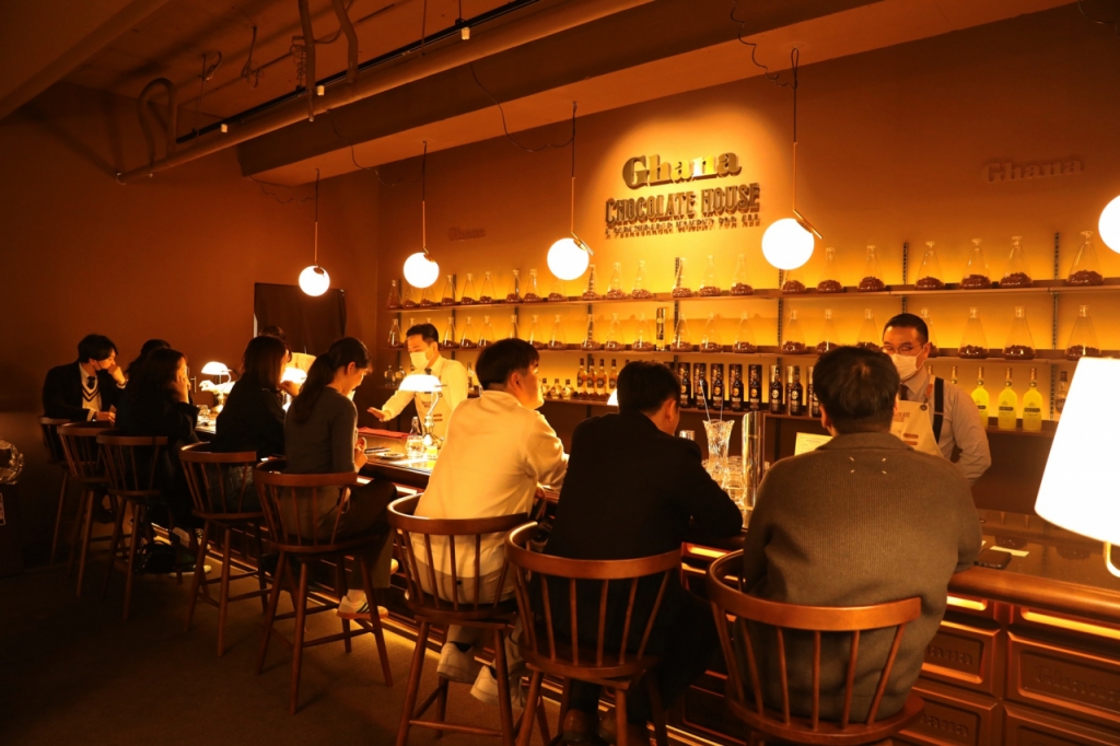 팝업스토어에서는 초콜릿뿐만 아니라 가나초콜릿을 활용한 디저트, 음료를 맛볼 수 있다. 밤에 운영되는 몰트바는 유명 몰트바인 '더부즈'와 롯데칠성음료의 협업으로 초콜릿과 어울리는 싱글몰트 위스키, 칵테일 등의 음료를 판다.