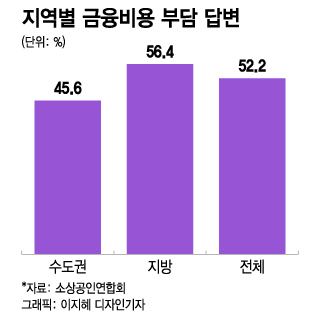 자영업자의 삶이 팍팍해진 가장 큰 이유는 대출금 상환 부담이 커져서다. 금융비용에 부담을 느낀다는 응답은 52.2%로 임대료(16.7%)를 훌쩍 뛰어넘는다. 금융비용 부담이 크다는 답변은 수도권(45.6%)보다 지방(56.4%)이, 창업 초기(3년 미만 41.3%)보다 안정기(7년 이상 54.9%) 자영업자에서 많이 나온다. 수도권에 비해 지방의 경기 회복 속도가 늦고, 코로나19를 거치면서 폐업 위기에 내몰린 자영업자들이 생존을 위해 대출액을 늘린 것이 족쇄가 된 셈이다.