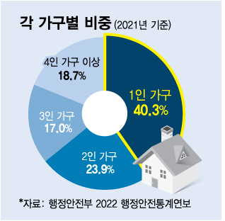 3일 외식업계에 따르면, 업계는 가족 형태가 3, 4인으로 이뤄진 핵가족에서 1, 2인 가구로 축소된 점에 주목해 1인·1.5인·2인용 등 새로운 메뉴를 내놓고 있다. 행정안전부의 지난해 행정안전통계연보에 따르면 2021년 기준 1인 세대는 946만 가구로, 전체의 40.3%를 차지한다. 1인 세대의 비중이 40%를 넘은 건 관련 통계 집계 이후 처음이다. 2인 세대는 561만 가구로 뒤를 이었다.