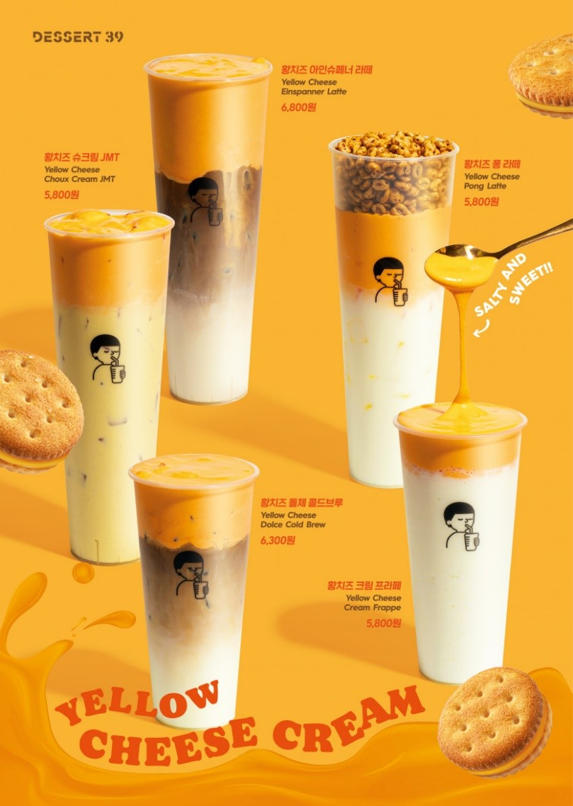 MZ세대의 취향에 맞춰 출시한 황치즈 음료시리즈가 틱톡, 유튜브 숏폼, 인스타그램 릴스 등을 통해 고객 선호도가 높아짐에 따라 디저트39는 연이은 황치즈 시리즈를 출시하고 있다.
