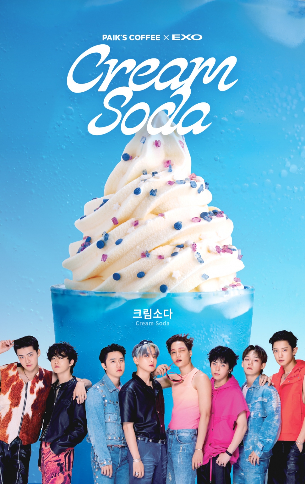 빽다방은 정규 7집으로 돌아온 엑소의 컴백을 기념해 팬들에게 색다른 재미와 신선한 경험을 제공하고자, 타이틀곡인 'Cream Soda(크림소다)'를 콘셉트로 한 신메뉴를 기획한 가운데 특별히 멤버의 모습이 담긴 전용 컵홀더까지 만들어 콜라보의 의미를 더했다.