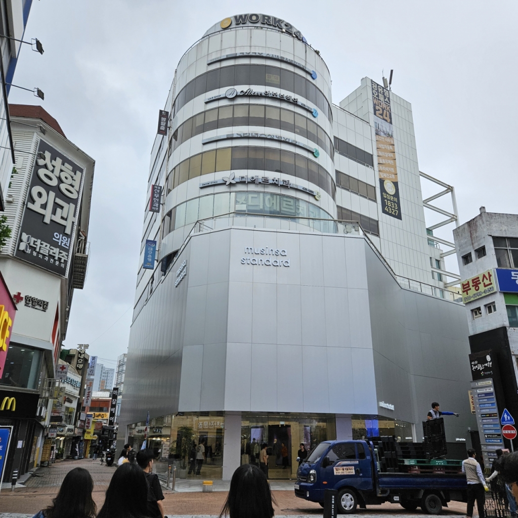 대구의 핵심 상권으로 꼽히는 동성로. 길을따라 뉴발란스, 휠라, 자라, 칼하트윕 등 패션 브랜드들이 길게 늘어서있다. 동성로 내에서도 랜드마크 격인 영스퀘어 빌딩에 지하2층~3층 총 5층 규모의 무신사 스탠다드 오프라인 매장이 둥지를 텄다. 무신사 스탠다드는 패션 플랫폼 무신사가 전개하는 자체 브랜드다.