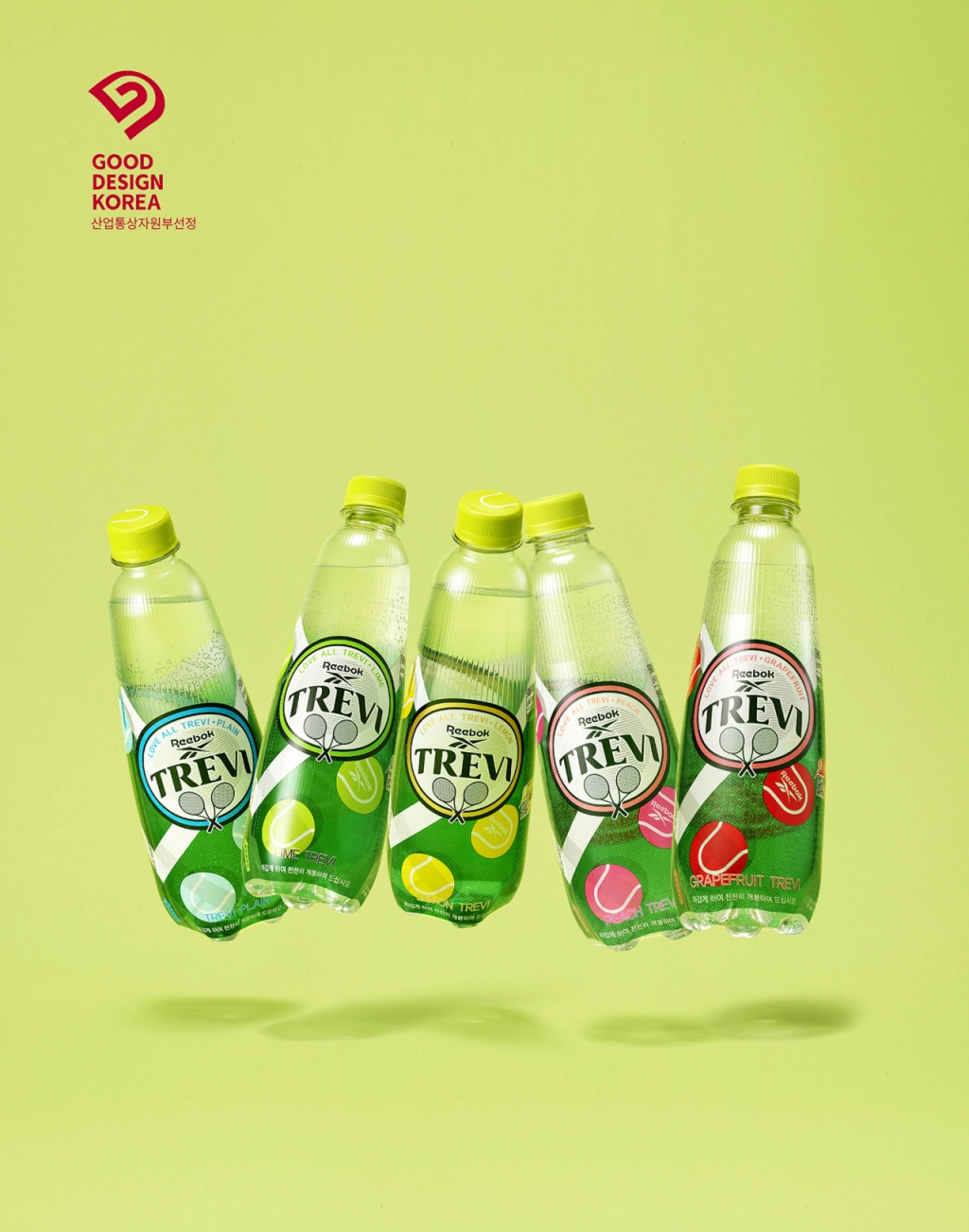 '트레비'는 스포츠 브랜드 '리복'과 협업한 한정판 패키지로 우수디자인에 선정됐다. 트레비 패키지의 상징인 초록색을 바탕으로 테니스 트랙과 공 디자인을 통해 현장감을 담았다. 플레인, 레몬, 라임, 복숭아, 자몽 향을 각각 다른 테니스 공의 색으로 표현하고 트레비만의 건강한 에너지를 다채롭게 표현한 점이 특징이다.