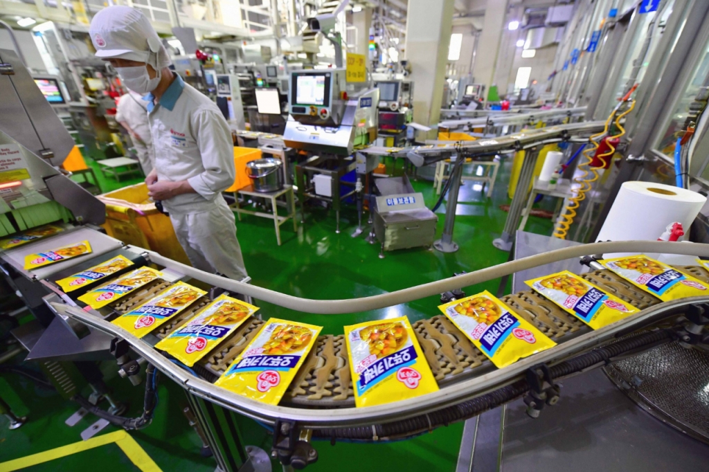 8일 낮 1시30분쯤 충북 음성군 대소면 오뚜기 대풍 공장. 공장 내부에서 설비가 분주하게 돌아가며 오뚜기 대표 제품인 카레 생산이 한창이었다. 대풍 공장은 카레, 케챂, 마요네스 등 오뚜기가 국내 최초로 개발한 제품이자 시장 점유율 1위를 사수하는 장수 제품을 주로 생산한다.