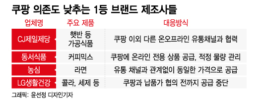 19일 관련 업계에 따르면 커피믹스 시장 1위인 동서식품은 쿠팡에 공급하는 온라인 전용 상품을 별도 관리한다. 쿠팡에 과도하게 공급량이 집중되지 않도록 일종의 캡을 씌우는 방식이다. 회사 관계자는 "맥심 커피믹스는 온라인 채널에선 다른 유통 채널과의 형평성을 고려해 적정 물량을 배정한다"고 말했다.