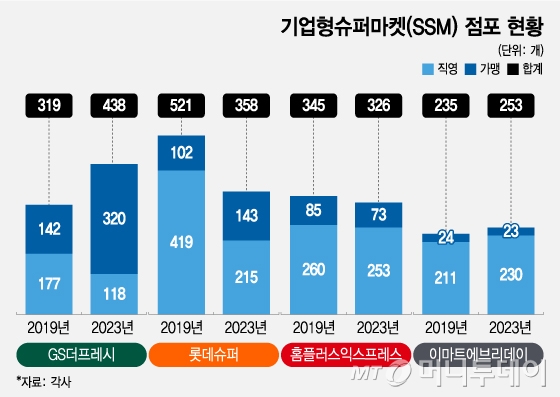 반면 홈플러스익스프레스와 이마트에브리데이는 여전히 직영점 중심의 점포 운영을 고수하고 있다.