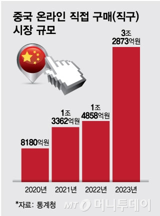그중 중국 직접 구매액은 3조 2873억원이었다. 1조4858억원이었던 2022년 대비 2배 이상(121%), 8180억원에 불과했던 2020년 대비 4배나 폭증한 것이다.