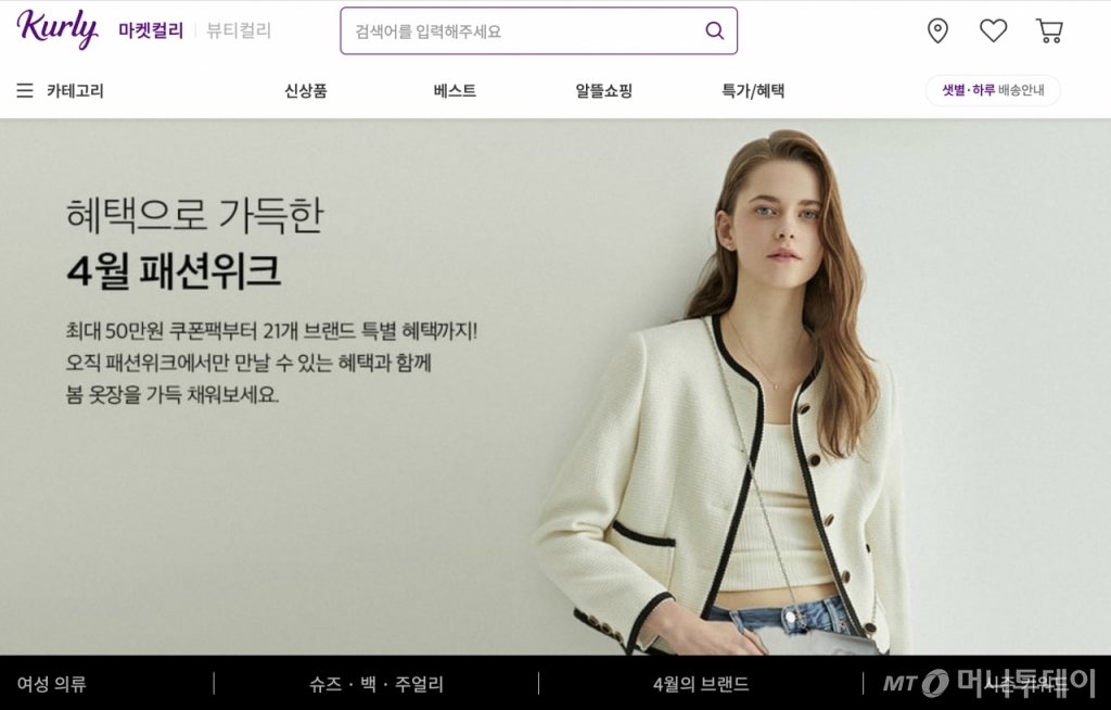 컬리는 2일까지 '4월 패션위크' 프로모션을 진행한다. 컬리의 주 고객층인 2040 여성들에게 인기 있는 패션, 액세서리 브랜드 21개를 한곳에 모았다. 상품 대부분은 판매자가 배송하는 형태로 판매되지만 일부 의류, 가방, 주얼리 등은 컬리가 직매입해 새벽배송으로 판매한다. 패션 새벽 배송의 시대를 준비하기에 앞서 컬리는 고객 취향 분석에 나선다는 입장이다.
