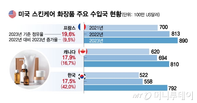 미국 스킨케어 시장에서 국내산 화장품들이 두각을 나타내고 있다. 국내 브랜드 뿐만 아니라 해외 브랜드 중 국내 생산 제품들이 인기제품으로 떠오른 영향이다. K뷰티 인기를 실감한 해외 브랜드들이 '메이드인 코리아'를 선택하기 시작했다는 의미다.
