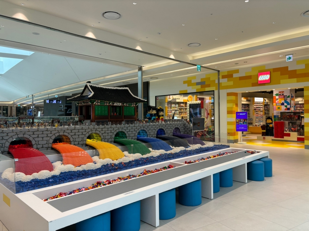 30일 '소프트 오픈(사전 개장)'한 롯데 '타임빌라스(TIMEVILLAS)' 수원점. 3층에 위치한 레고 스토어 앞에는 어린 아이들과 함께하는 가족고객부터 MZ세대 고객까지 즐길 수 있는 레고 체험 팝업이 마련됐다. 형형색색의 레고 조각들을 직접 조립할 수 있는 레고 전용 테이블이 매장 앞에 마련돼 쇼핑과 놀이를 동시에 한 곳에서 해결할 수 있게 조성됐다.