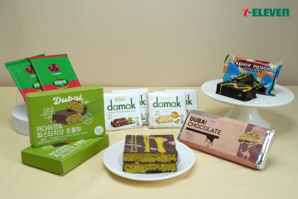이러한 두바이 초콜릿 인기에 발맞춰 세븐일레븐은 6종의 중동 초콜릿과 디저트를 새로 선보인다.