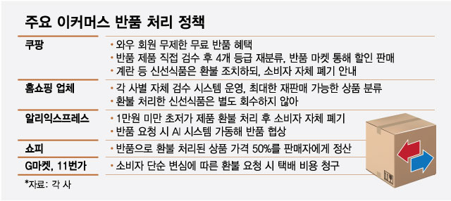 다만 일상 용품이 아닌 계란, 우유, 육류 등 신선식품은 소비자가 반품을 신청해도 회수하지 않는다. 상품 훼손 등 사유가 명확하면 환불 조치하되, 해당 상품은 소비자가 자체 폐기하도록 안내한다.