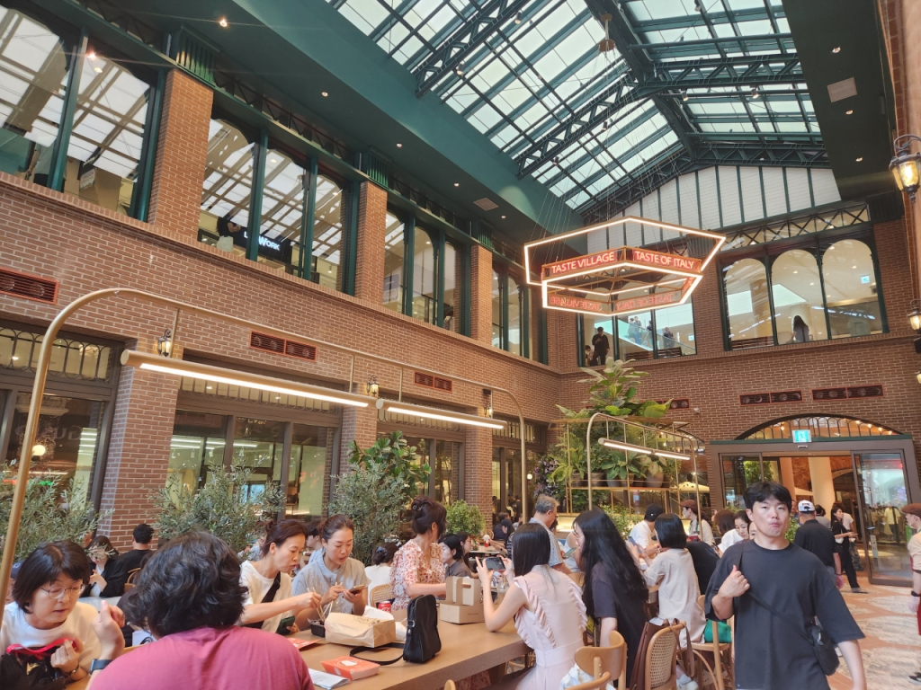런던 코벤트 가든을 모티브로 한 프리미엄 푸드코트 '테이스트 빌리지'는 이번 리뉴얼을 대표하는 특화 프리미엄 공간이다. 내부에 포토존이 있고, 중앙홀 부분은 높은 천정고와 통유리창으로 확 트인 개방감이 특징이다. 부산식 떡볶이, 돼지국밥, 풍원장 등 부산 지역 맛집 브랜드를 비롯해 조선호텔이 운영하는 다이닝 레스토랑 호경전 등 다양한 브랜드가 입점했다. 매장 앞에서 만난 한 30대 고객은 "내부 인테리어가 독특했고, 메뉴도 많았다"며 "오픈 첫날이라 다소 붐볐지만, 다시 올 생각이 있다"고 했다.
