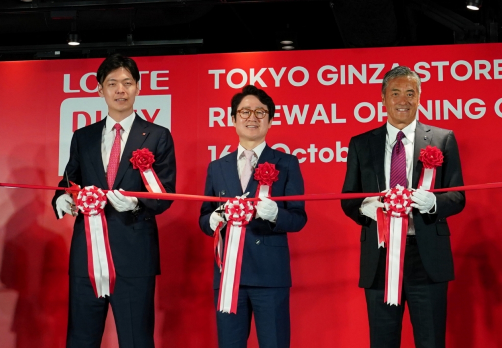 16일 오전 롯데면세점 동경긴자점에서 김주남 롯데면세점 대표이사, 다마쓰카 겐이치 롯데홀딩스 대표이사, 신유열 롯데지주 미래성장실장 등 관계자 150여명이 참석한 가운데그랜드 리뉴얼 오픈식을 진행했다.