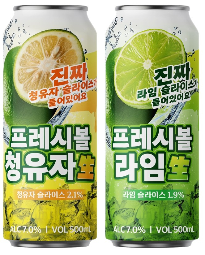 이번 제품은 프레시볼 청유자, 라임 2종으로 가을 날씨와 잘 어울리는 산뜻한 하이볼이다. '프레시볼 청유자 생'은 가을에 잠시 나오는 청유자 슬라이스가 통째로 들어간 하이볼이다. 청유자 특유의 쌉싸름한 맛과 농축된 유자의 진한 단맛이 어우러진다.