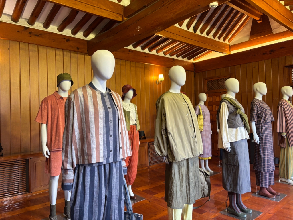 11일 방문한 서울 가회동 '자주앳홈(JAJU@Home) SS2025' 전시. 고풍스러운 멋이 한껏 느껴지는 한옥에서 새롭게 태어난 '자주'의 모습이 드러났다. 고무신을 신고 있는 마네킹부터 콩·숯 등 한국적 재료를 반영한 디자인의 제품과 구경거리가 가득했다.