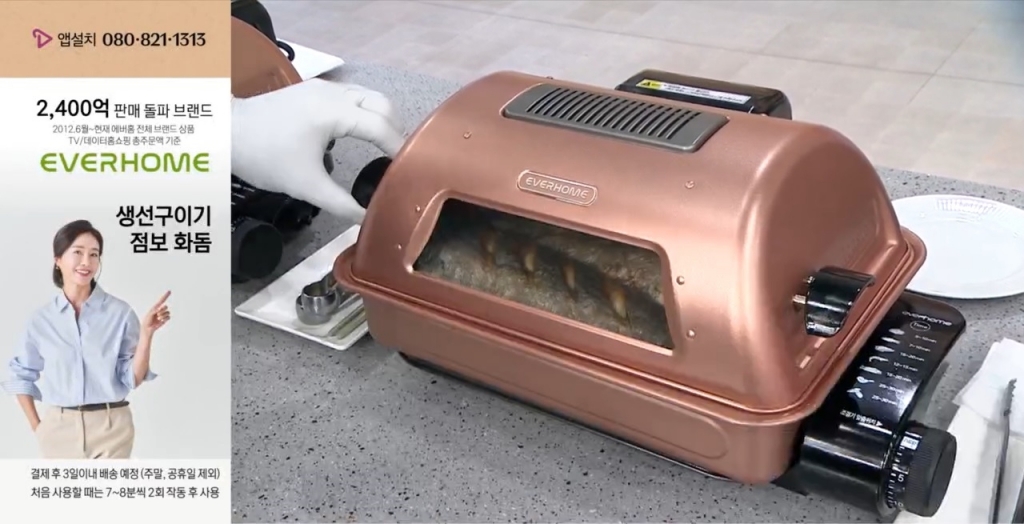 가장 인기를 끝 상품은 '에버홈 생선구이기 점보'로 한 달간 약 4200세트 이상 판매됐다. 판매 방송이 대부분 완판으로 마쳤다. 냄새와 연기, 기름 등 걱정 없이 석쇠 구이 요리를 즐길 수 있는 상품이다. 상품 하단부와 뚜껑에 위치한 열선으로 식재료를 골고루 익혀주며 필터를 통해 연기와 냄새까지 잡아준다. 생선구이뿐 아니라 통삼겹살구이, 군고구마 등 각종 그릴 및 석쇠 요리가 가능하다.