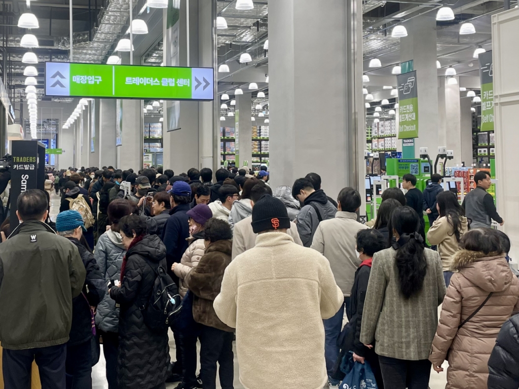 실제로 14일 오픈 당일 방문한 이마트 트레이더스 마곡점(이하 마곡점)은 평일 오전이라고 믿기지 않을만큼 몰려든 인파 인산인해를 이뤘다. 최근 품귀현상을 빚고 있는 위스키를 사기 위해 매장에 온 2030 남성들부터, 식재료를 구매하기 위해 찾아온 백발의 노인까지 다양한 연령대의 고객들이 한 곳에 모여들었다.