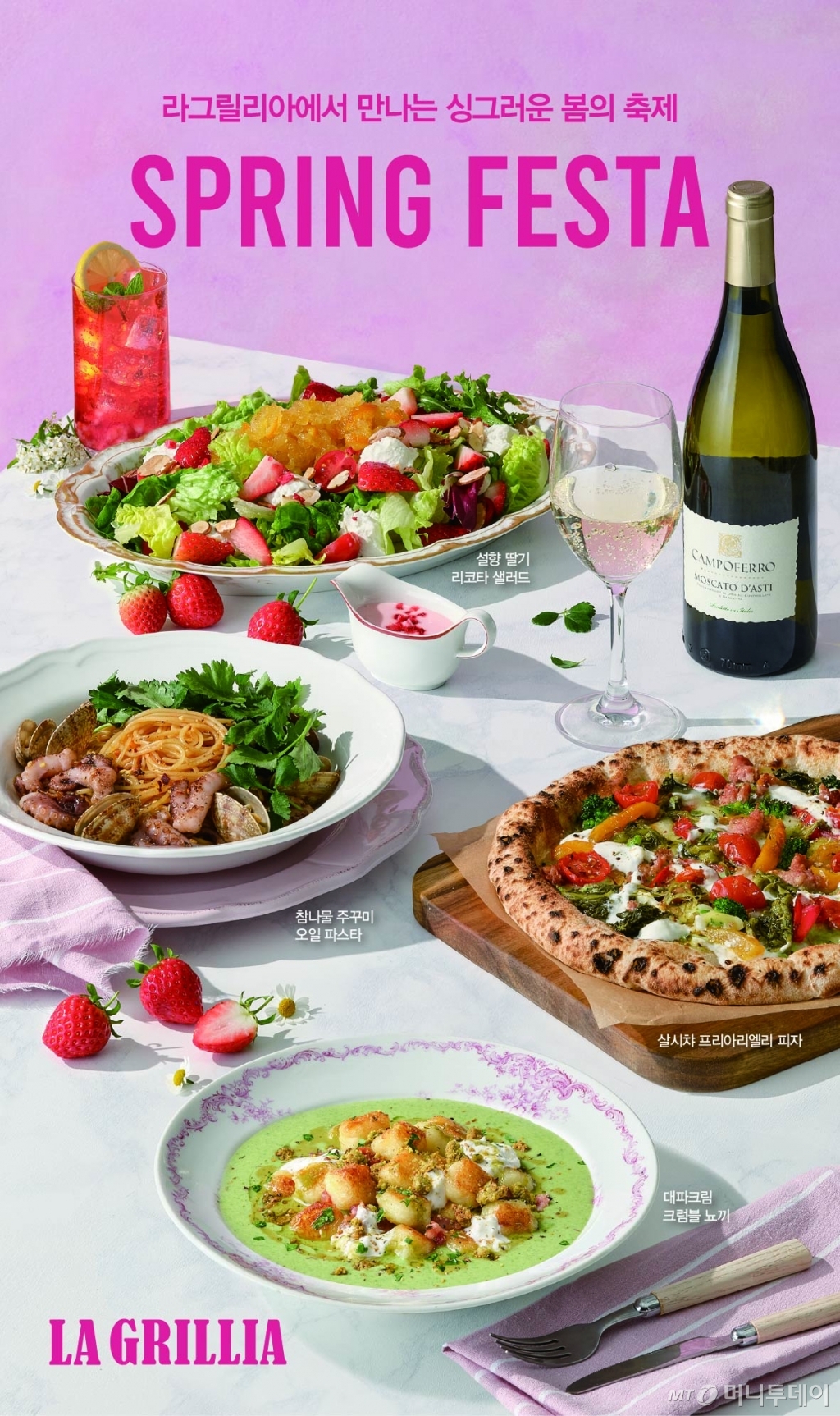 SPC 그룹의 양식 전문 프랜차이즈 '라그릴리아'가 봄 시즌 메뉴를 출시했다고 5일 밝혔다. 참나물과 딸기, 주꾸미 등 봄철 음식을 양식과 결합했다.