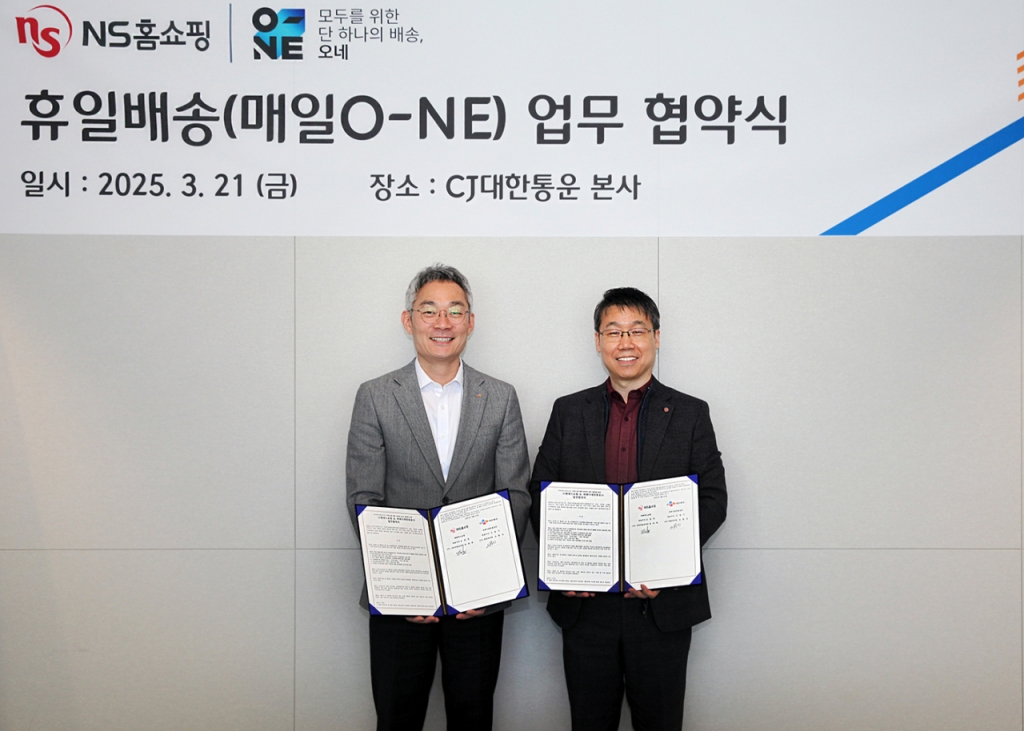 이번 업무협약에 따라 NS홈쇼핑의 휴일 배송 물량은 CJ대한통운이 전담하게 된다. 기존 평일 판매 상품도 점차 '매일 오네(O-NE)' 배송 서비스로 전환할 예정이다. 이를 위해 양사는 전담 조직을 구성하고, 안정적인 서비스를 제공하기 위해 적극 협력하기로 했다.