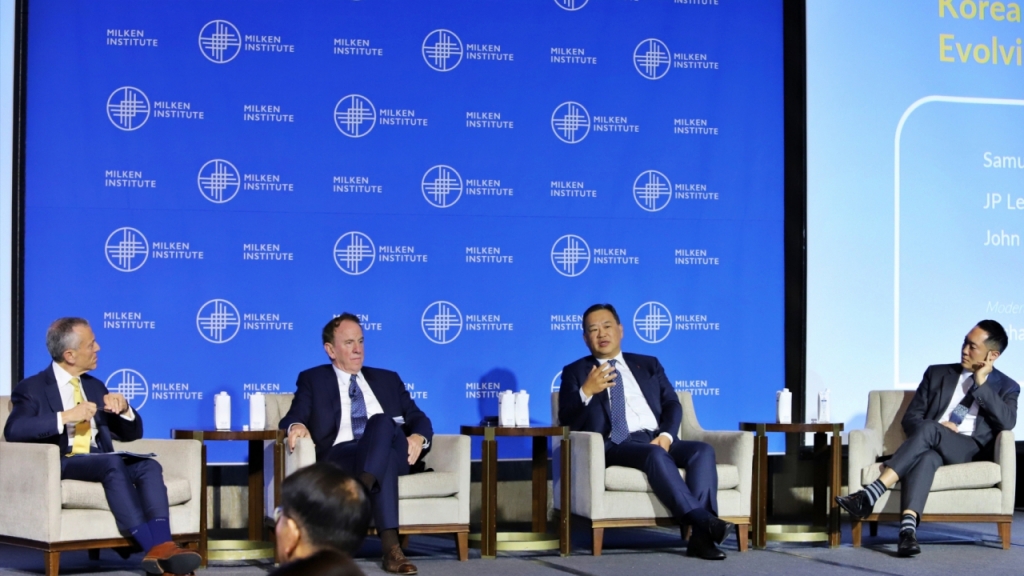 세션은 리차드 디티지오(Richard Ditizio) 밀컨 연구소 최고경영자(CEO)가 좌장으로, 김 부회장과 글로벌 로펌 퀸 엠마뉴엘 어쿼트 앤 설리번의 존 퀸 회장, 이준표 SBVA 최고경영자가 변화하는 글로벌 정치 및 경제 환경에서 글로벌 투자자들에게 한국이 어떤 매력적인 전망을 제시할 수 있을지에 대한 의견을 나눴다.