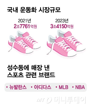 17일 관련업계에 따르면 MLB와 NBA, 아디다스 등 스포츠와 관련 캐주얼 브랜드 매장이 최근 국내 팝업 스토어(임시 매장)의 성지로 꼽히는 성수동 연무장길에 플래그십 스토어(상설 매장)를 연달아 선보이고 있다. 지난해 10월 뉴발란스를 시작으로 스포츠 브랜드들이 성동으로 몰려가는 모양새다.