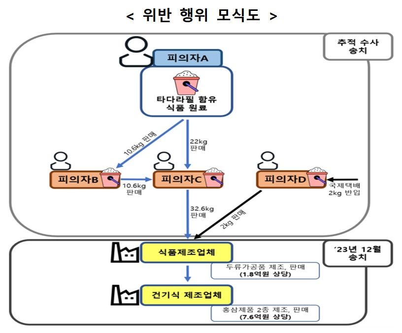 앞서 지난 2023년 12월 식약처는 C씨와 D씨로부터 공급받은 타다라필 함유 원료들로 '발아대두단백'을 만들어 판 업체와 이를 사용해 홍삼을 제조·판매한 업체 등도 검찰에 송치했다.