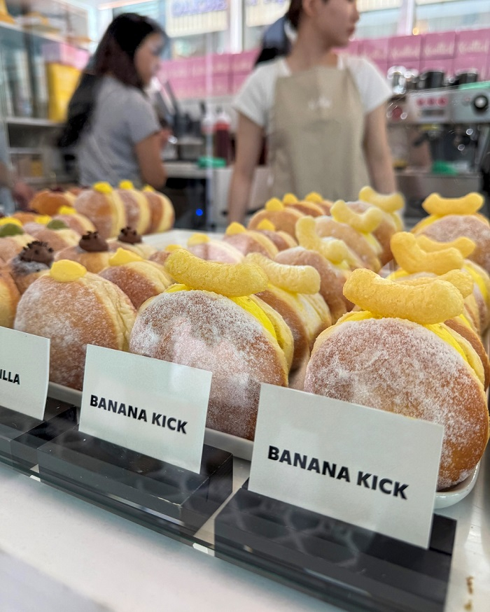 농심은 디저트 카페 '노티드(Knotted)'와 손잡고 미국 LA 웨스트필드에 위치한 노티드 해외 1호점에서 시그니처 메뉴 '바나나킥 크림 도넛'을 선보였다고 17일 밝혔다.