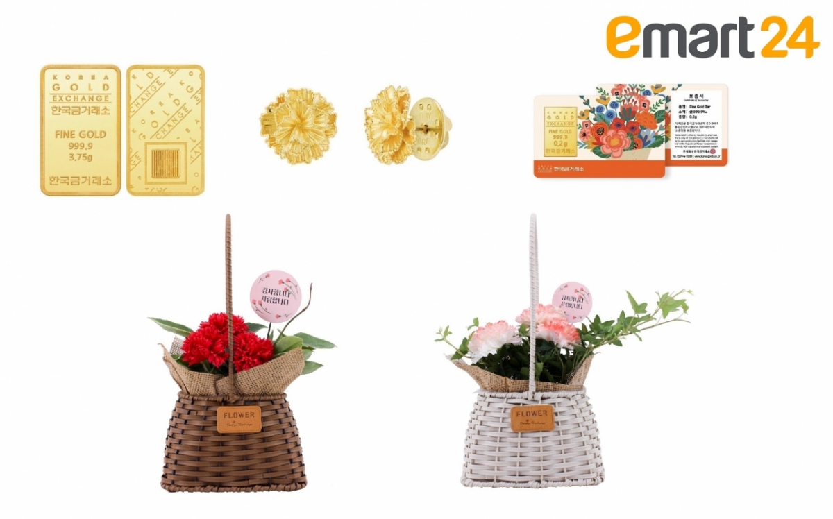 이마트24가 어버이날(5월 8일)을 맞아 순금 카네이션 배지, 비누꽃 카네이션 등을 선보인다고 6일 밝혔다.