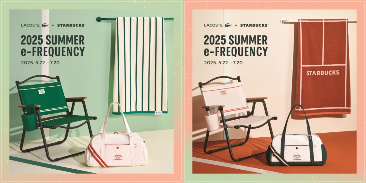 프렌치 패션 스포츠 브랜드 동일 라코스테(대표 배재현)가 스타벅스 코리아(대표이사 손정현)와 손잡고 프렌치 테니스 헤리티지와 여름의 여유를 담은 2025 여름 e-프리퀀시 캠페인을 선보인다. 5월 22일부터 7월 20일까지 약 60일간 진행되는 이번 협업은 라코스테만의 스포츠적 감성과 브랜드 아이덴티티를 제품 하나하나에 섬세하게 담아낸 것이 특징이다.