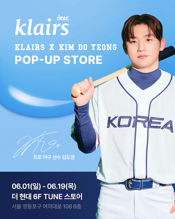 글로벌 뷰티 브랜드·콘텐츠 기업 위시컴퍼니의 '디어클레어스(Dear, Klairs)'가 다음달 1일부터 19일까지 서울 여의도 더현대 서울 지상6층에 있는 튠(TUNE)에서 브랜드 앰배서더 김도영 프로야구 선수(기아타이거즈 소속)와 함께하는 특별 팝업 스토어(임시 매장)를 운영한다고 30일 밝혔다.
