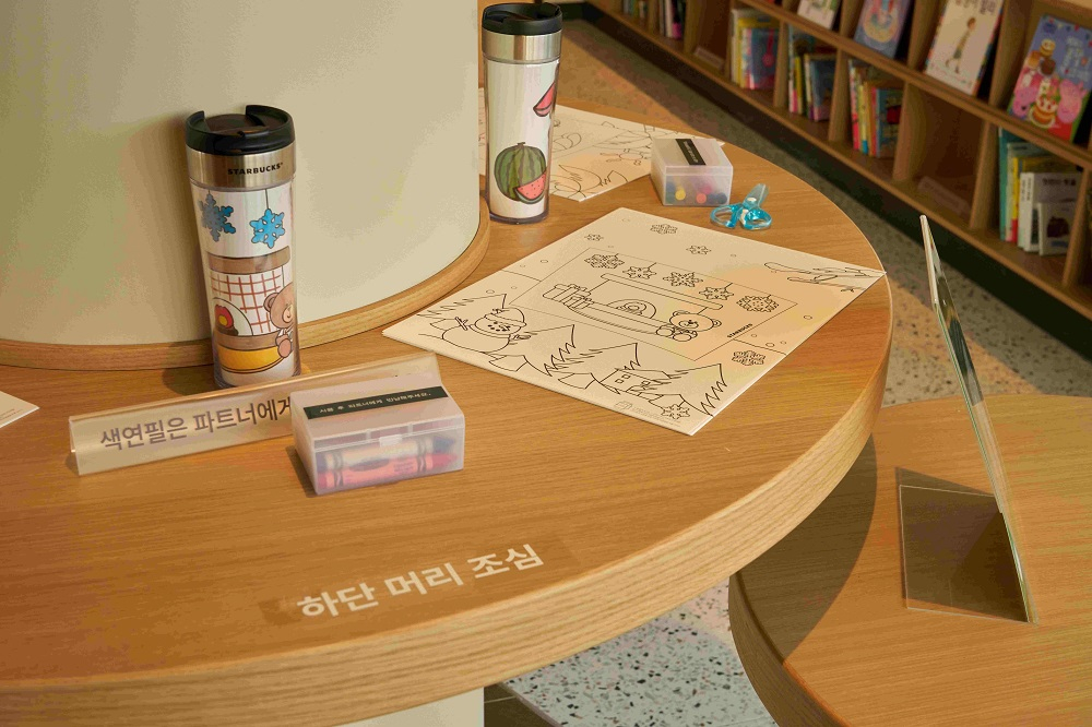 매장에 비치된 색칠 도구와 컬러링 속지는 고객 요청 시 파트너를 통해 제공받을 수 있고 크리에이티브 텀블러는 매장에서 별도 구매 가능하다.