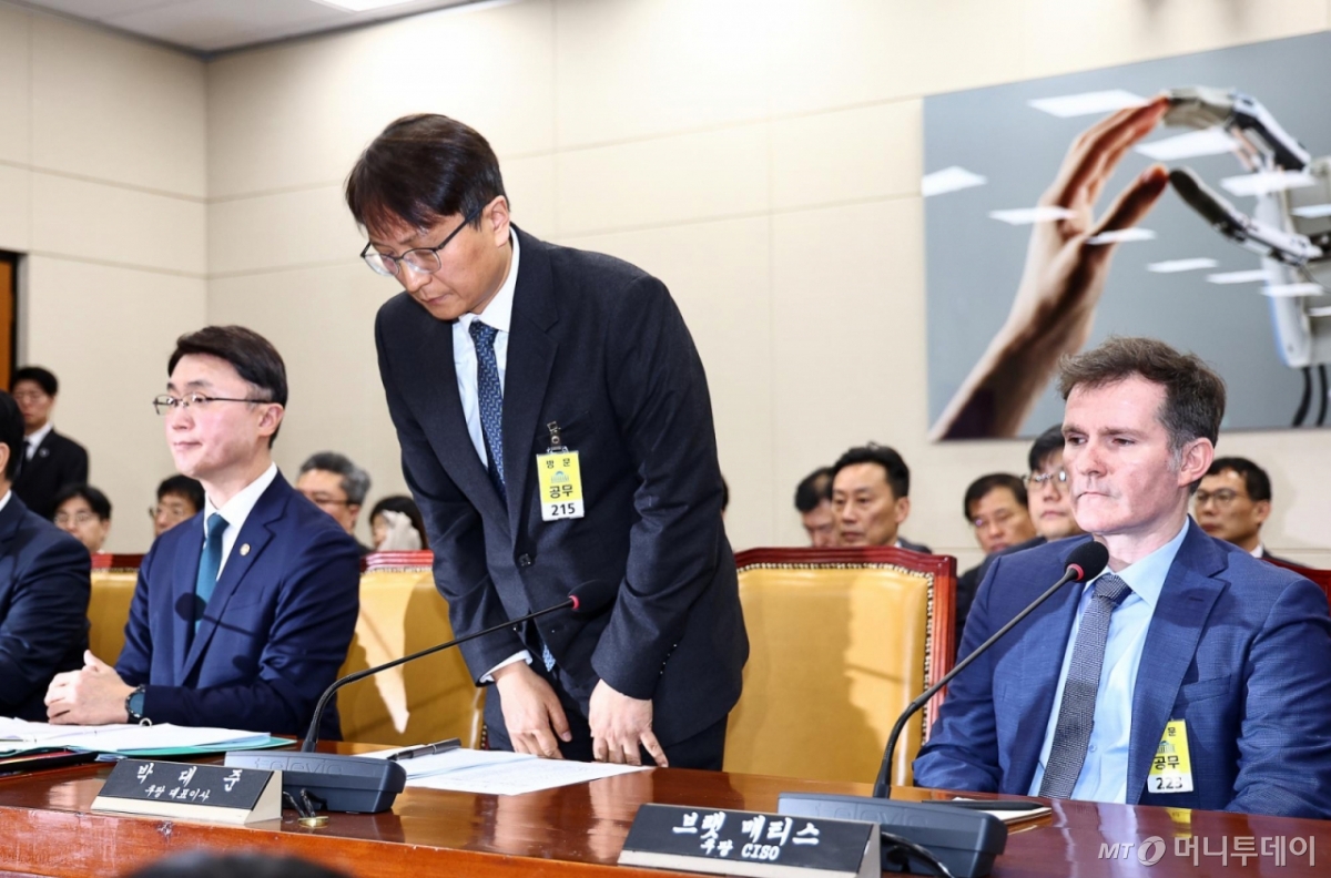 ![[서울=뉴시스] 김명년 기자 = 박대준 쿠팡 대표이사가 2일 오전 서울 여의도 국회 과학기술정보방송통신위원회 전체회의에서 고개숙여 인사하고 있다. 2025.12.02. kmn@newsis.com /사진=김명년](https://thumb.mt.co.kr/cdn-cgi/image/f=avif/21/2025/12/2025120211004020365_1.jpg)