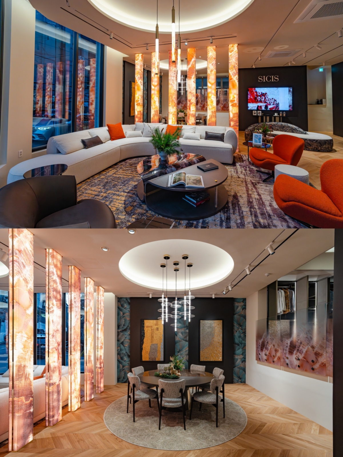 시치스가 뉴욕, 런던 메이페어, 파리, 밀라노 브레라 지구, 두바이 등 국가별 랜드마크 지역에 오픈한 쇼룸들은 각 지역의 문화적 특색, 취향 등을 고려해 제각기 다르게 구성됐다. 서울 쇼룸(도산대로 24-19)에 위치한 한국 쇼룸은 1층은 모자이크, 베트리테를 중심으로 한 주거 공간을 구현했으며 내년 초 오픈할 지하 1층은 럭셔리 바(Bar) 컨셉으로 구성될 계획이다.