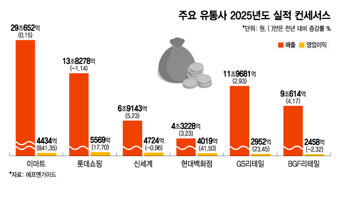 오프라인 점포 주력 6개 대형 유통사 2025년도 실적 컨세서스 분석