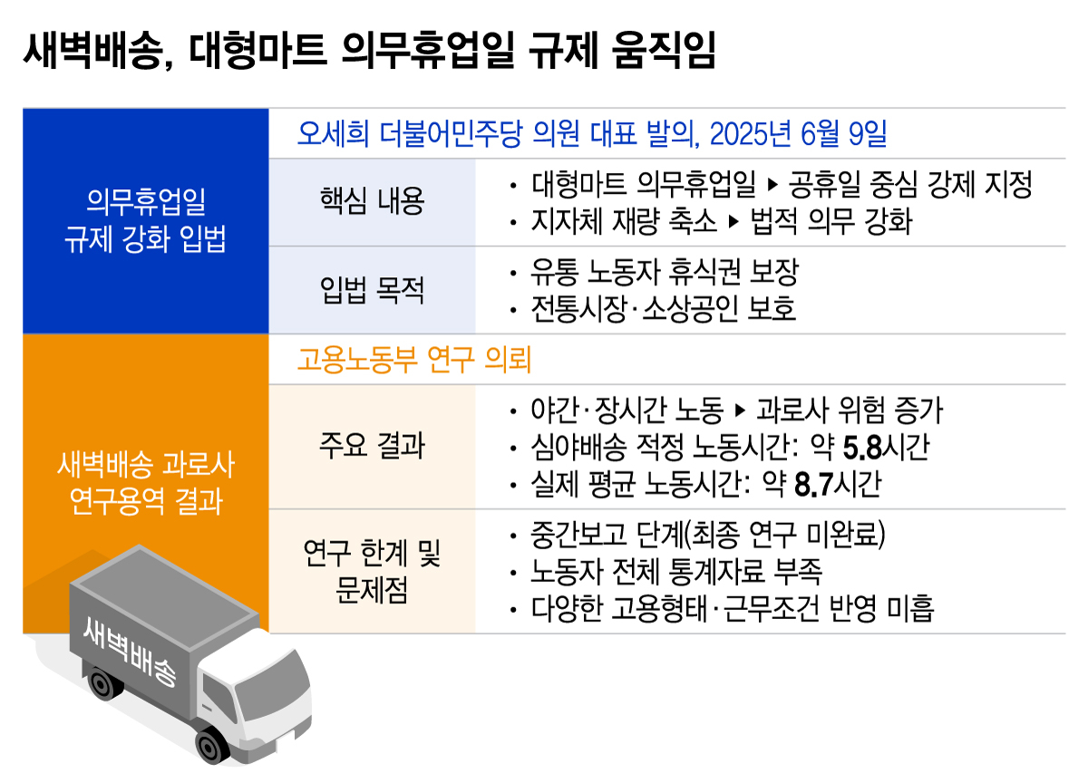 5일 정치권과 유통 업계에 따르면 고용노동부는 지난해 12월 새벽배송 기사들의 과로사 위험을 입증하기 위한 연구용역 중간 결과를 발표했다.