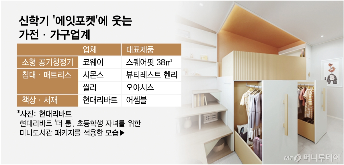 신학기를 앞두고 학령기 자녀의 방 환경을 새로 정비하려는 수요가 늘고 있다. 가방과 학용품 중심이던 신학기 준비가 침대·책상·공기청정기 등 생활환경으로 확장하는 모습이다. '에잇포켓' '텐포켓' 소비 트렌드까지 맞물리면서 가전·가구업계가 신학기시즌 특수를 누리고 있다.