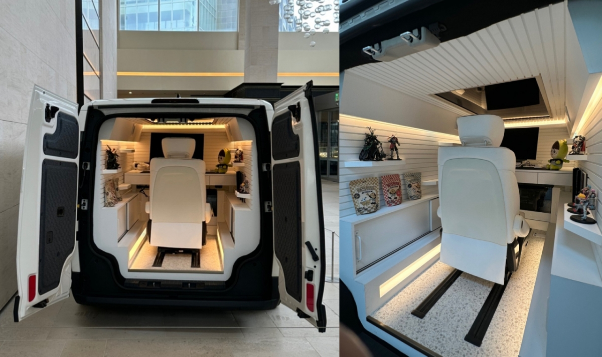 기아가 선보인 PV5 게이밍 스테이션 콘셉트 모델은 PV5 카고를 기반으로 제작된 1인용 프리미엄 게임 환경으로 설계되었다. 차량 내부에 몰입형 게이밍 공간을 구현해 이동과 휴식이 결합된 새로운 개인 중심 공간의 모습을 제시한다. 전력 공급 시스템을 활용해 차량 자체가 하나의 미니 게임 스튜디오처럼 기능하도록 구성된 점이 특징이다.